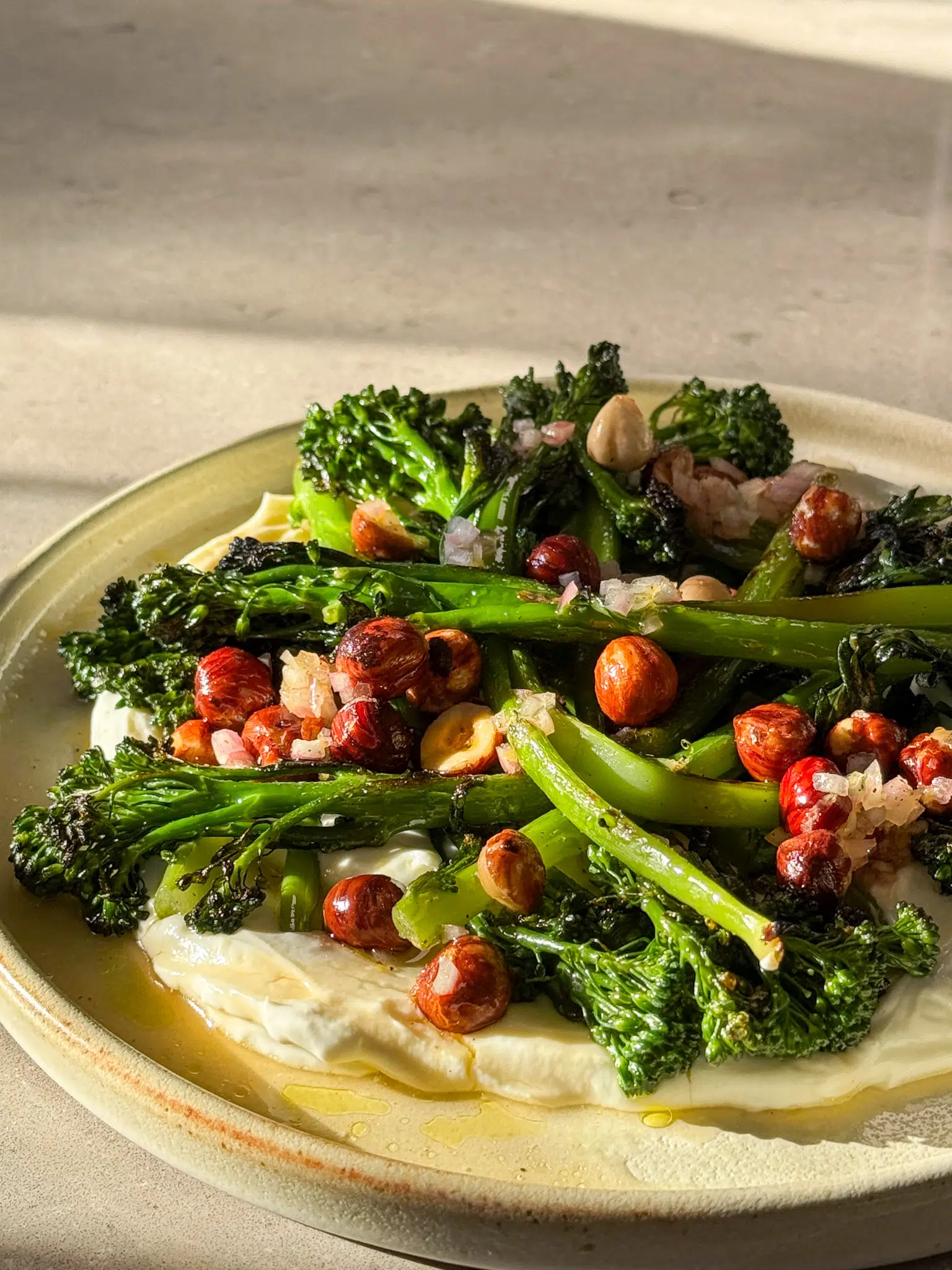 Some things just belong together — the smoky edge of charred greens, cool whipped labneh, the golden crunch of toasted hazelnuts and a glossy drizzle of hot honey to finish. Simple, but satisfying. Everything works together without trying too hard — just good flavours in the right places.